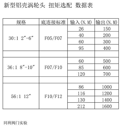 新款不銹鋼系列渦輪頭 扭矩選配 數據表